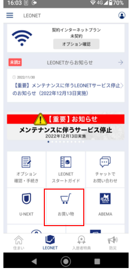 Quý khách có thể nhấp vào mục "お買い物" trên ứng dụng chính của màn hình trang chủ.