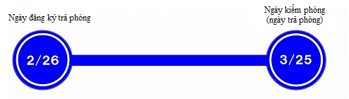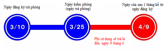 例)Ví dụ: Ngày 10/3 đăng ký trả phòng và ngày 25/3 trả phòng thì tiền phí sử dụng sẽ phát sinh 1 tháng kể từ ngày đăng ký, tức là ngày 9/4.