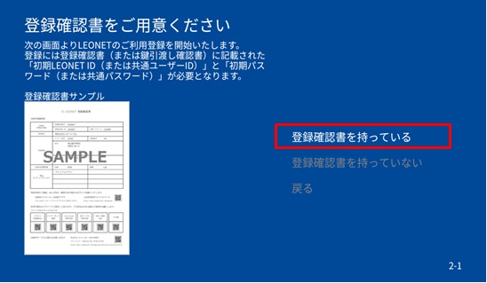 giấy xác nhận đăng ký LEONET, hãy chọn 「đi tiếp」.