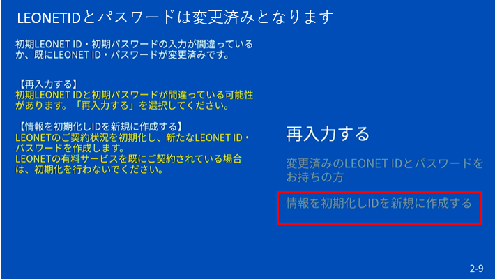 ⑩ Sau khi nhập 「LEONET ID thời kỳ đầu」 và 「mật khẩu thời kỳ đầu」 chọn đi tiếp.